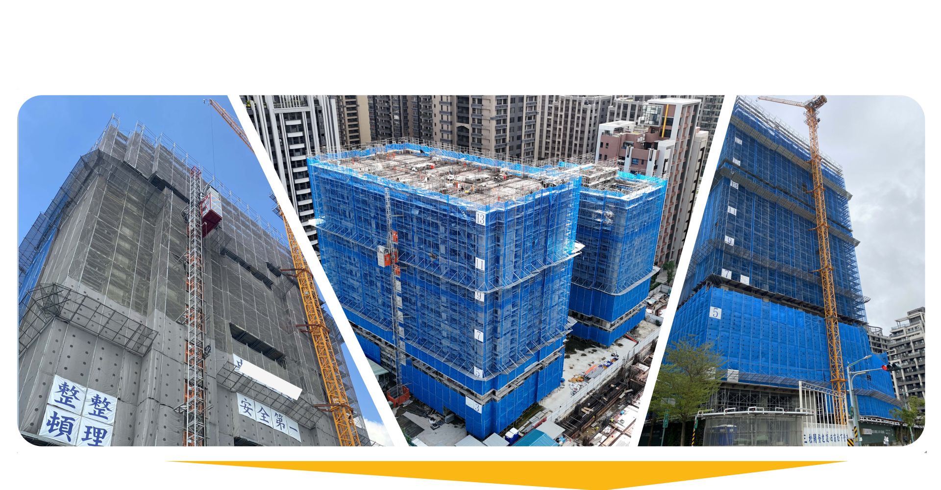 2014年開始大量使用合乎國家標準CNS4750規定的鋼管施工架,近年來也開始大量只用圓盤式系統架,以便更安全有效的照顧施工品質,我們以沒有最好只有更好的優秀經營理念,使施工技術與品質更上巔峰,並且已與各大知名建設公司、營造業與科技業創造雙贏佳績!