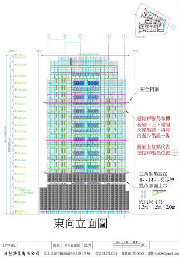 2.立面鷹架配置圖(含三角架、斜籬、踢腳板、帆布網)