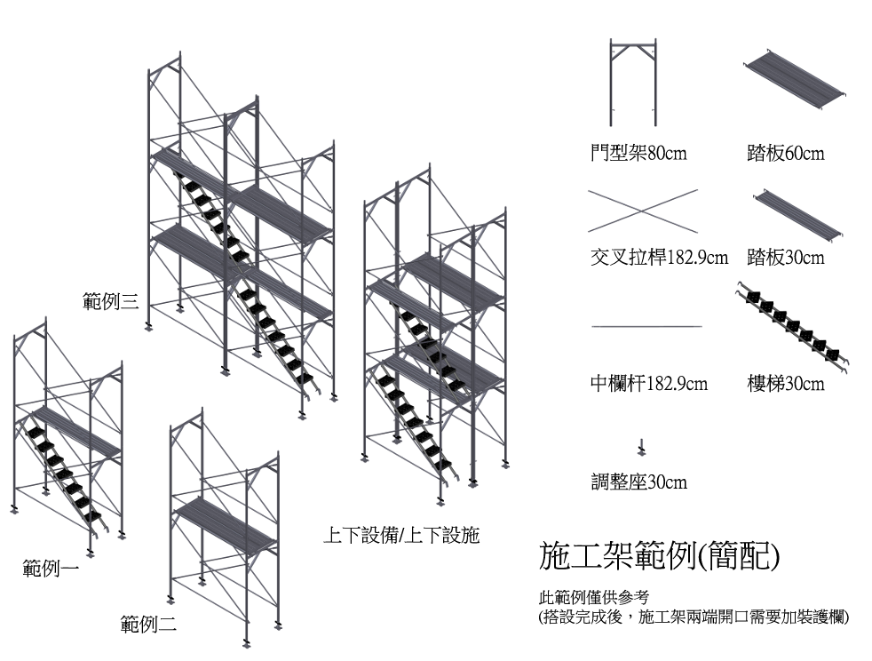 此範例僅供參考(搭設完成後,施工架兩端開口需要加裝護欄)