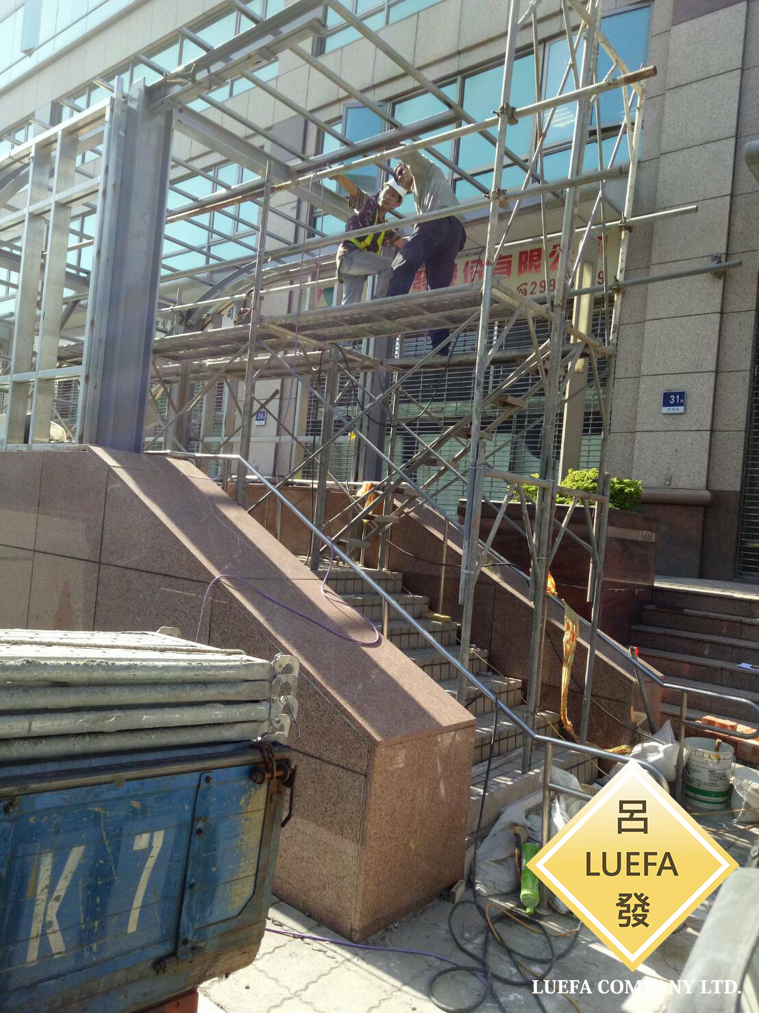 2.本公司之任何補修業務工程搭架,皆不能自行移動、破壞、塗漆上色與焊接任何非本公司同意之物品,有以上問題者一律依材料原價賠償。