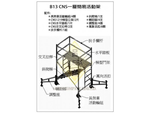 B13 一層簡易活動架(CNS材質) * 輪子0.25M+門型架1.725M=站立高度1.975M