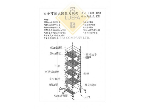 規格:高度:1.8M 站立高度:7.45M